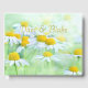 Lush-ängar med charmerande daisy från fram- och baksidan. Den gyllene gulten av blommornas centrum som brinner i guld finns i ett lättläst, blomstrande typsnitt för namnen av paret, honunern eller företaget eftersom dessa vackra blommor är mycket anpassningsbara.