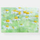 Lush-ängar med charmerande daisy från fram- och baksidan. Den gyllene gulten av blommornas centrum som brinner i guld finns i ett lättläst, blomstrande typsnitt för namnen av paret, honunern eller företaget eftersom dessa vackra blommor är mycket anpassningsbara.