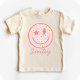 Denna T-shirt har en Smiley Ansikte i pastellrosa färg och Daisy gula och vita blommor. Barn Glad Ansiktsgrafik T-Shirt design.