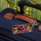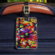 med originalkonstform från vattenfärgsmålning av Sacha Grossel of rainbow färgad daisy straw-blommor. Den här lysande blommigtens abstrakta utformning av flerfärgade röda, orange-, blått- och gult-blad inspireras av botaniska konst. Den här bagagetaggen kan anpassas så att dina personuppgifter visas på baksidan.