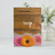 Anpassa Daisy Trio Land Barn-Bröllopet OSA till ditt specifika svarsdatum för giftermål och koppla det till motsvarande inbjudningar för att skapa en koordinerad uppsättning för stationära datorer. De här informella svarskorten för anpassningsbar av nuptial rsp.s.v.p.-elegant har ett foto med en blommigt av två rosa daisy och en orange daisy blomma blommar med en vit möhippa veil och en avvanda brunlingerbakgrund.