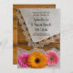 Meddela dina kommande informella ännu elegant-lantgårdar eller grenmöbler i stil med den quaint Daisy Trio och Snöre Land Barn i Bröllop spara datum. Den här söt anpassningsbar rustic chic giftermål behålla innehåller datumpromemorian och ett foto av en fantastisk blommigt av två daisy och en rosa orange daisy blomma blommar, vintage snöre trimmad benvit färgad linne handkerChief med en vit möhippa Veil och en vättad brun lingerbakgrund. Perfekt eller idé för ceremonin och mottagningstemat för avslappnaden party giftermål. Finns som en utskriven inbjudan att skicka eller som en digital nedladdning för att enkelt kunna dela digitalt online.