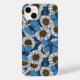 Blå fjärilar och daisy blommor på blå botten