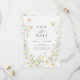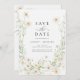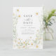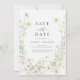 Tydliga vita daisy med gulter skapar en visning för boho-vilda blommor på denna minimalisttyp, spara datumdesignen. Perfekten att meddela bröllop till familj och vänner.