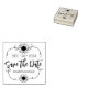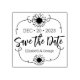 Det här "Spara datum"-gummiet frimärke har en daisy ram med ett par namn och datum.