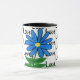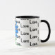 Söt hand - målad blå daisy med gultens blommigt i mitten. Kärlek är skrivet i svart skript över hela mönster. Originalteckning © TamiraZDesigns.