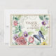 Det van vid konstarbetet skapar denna tackkort sänker kortet sattes tillsammans från en original- målning av Audrey Jeanne som Roberts som är blandad med hand plockade, virvlar runt och ett räcka målat subtilt snöremönster i bakgrunden. En blåttfjäril fladdrar bland en lös bukett av rosa ros, purpurfärgade pansies, gula daisy och ferns. Den omvända sidan har det subtila snöret och virvlar runt mönster, ditt monogramutrymme för dig till handwrite ditt meddelande. DU KAN TYCKER OM OCKSÅ: