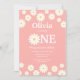 Rosa Daisy 1:a födelsedagspartiets inbjudan, Boho Daisy 1:a födelsedagen. Bohemisk Daisy Blommigt 1:a födelsedagarinbjudan,
