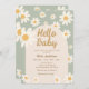 Daisyn Sage Grönt Hej Baby Retro Baby Shower Inbjudningar