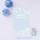 Blått Daisy, babydusch, råd till föräldrarna att bli kort.