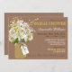 Rustik inbjudningskort för möhippan-kortdesign som har en bakgrunds- och mynningsbakgrund och fullt av daisy i burk.