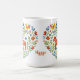 Embrace the Danish and Norwegian concept of Hygge—a feeling of cozy contentment and well-being—with this charming coffee mug. The design features a heart shape filled with traditional Scandinavian folk art motifs, including a Dala horse, stylized birds, and vibrant florals. This mug makes a beautiful, thoughtful gift idea for anyone who loves Nordic decor, traditional designs, and cozy home aesthetics. It's the perfect vessel for your slow morning tea or coffee.