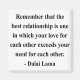 "Kom ihåg att det bästa förhållandet är ett där kärlek för varandra överstiger ditt behov för varandra." - Dalai Lama.