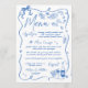 Presentera din bröllop-fest med vårt charmerande bröllop-menykort. Med visuella handritade illustrationer med lekfull vågigt och tyst linjer tillför det här menykortet en aning konstnärligt lugn till din matupplevelse. Den blå serenpaletten förbättrar den unika designen och skapar den som ett fint tillägg till inställningarna i bord. Perfekt för par som uppskattar kreativitet och roligt kompletterar det här menykortet på ett utmärkt sätt din dekorator i bröllop och informerar gästerna om de utsökta diskarna för komen. Höj firande med det här menykortet för snyggt och redigering! Utforska våra samordningsobjekt som finns tillgängliga i butiken för att få en sammanhängande och snyggt. c) Alltid efter Bröllop