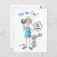 Dålig hårdag, blå klänning, tryckt uttryck vykort
