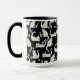 Hand plockade mönster är en kompilering av hårigets svarta kattdjur som knackar på olika sak - kaffe koppar, sukulenter, tv-sändare och vas av blommor. Ett roligt mönster för dem som kärlek sina katter, även om de är idiot och knackar på saker. Den här versionen är vita katter med liten rosa öron mot svart bakgrund.