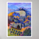Vyn från bibliotek-fönstret i Casa Cares i Reggello, Italien. Från en ursprunglig oljemålning av Kaliforniens konstnär, Dan Berkeland.