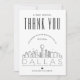 Ett speciellt tack till ditt platta kort som är skräddarsytt för bröllop i den vackra staden Dallas i Texas. Den har en stiliserad skylt över staden på kortets framsida. På insidan finns en punkt för ditt eget unika meddelande och ett foto som tillval. Använda anpassningsfunktionerna för att ändra fotofiltret till färg och ändra dess storlek efter behov. Alla inslag i det här objektet är olåsta och justerbara, så ha roligten som kreativ!