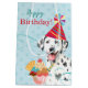 Grattis på födelsedagen hälsning med denna söta design med ett leende, party-slitande Dalmatian med en glass. "Ha en Sweet Birthday" på framsidan och "Grattis på födelsedagen" på baksidan. Texten kan lätt ändras. Klicka bara på knappen Anpassa.