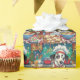 Fånga helgdag glädje att baka med den här härliga scenen med en glad kock omgiven av julgransar och festliga dekorationer. En hjärteberande firande av årstidens sötaste traditioner.