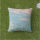 Den dalmatiska, dalmatiska prickbilden på Dekorativ kudde skapades från ett originalfoto av ZoeSPEAK av ett akvblått solnedfall himlar fyllt med puffa rosa moln och en flock av svarta fåglar. Fåglarna blir abstraktens svarta former som är spridda över mjuka akvariet och rosa himlar.