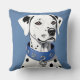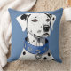 En digitalt illustrerad Dalmatisk hund med svarta prickar, med en snyggt blå hals, som visas mot en matchande blå bakgrund. Elegant och konstnärlig representation av ett populärt hund aveln.
