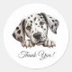 Skicka ett hjärtligt tack med det här ikoniska Dalmatiska Tacken-dekalet. Den här rasens vackra svarta och vita jacka är en underbar gåva till vilken hund älskare som helst.
