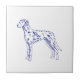 Klassisches Design in Blau-Weiß. Blaue Linienzeichnung eines Dalmatiners auf weißem Untergrund.