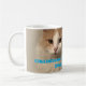 Ett mugg som säger Dam för demokrati, barnamässigt katt. Med ett foto av en katt.