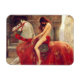 John Collier Dam Godiva magnet. Oljemålning på arbetsyta från 1897. Dam Godiva, som målar John Colliers mest berömd, skildrar den legendariske Anglo-saxonnoblekvinnan som åker till stan på sin häst i protest mot hennes höga skatter på make. Hästen hon rider är vit och lång och bär en röd hästfilt och bridle. En söt gåva till fläkt av John Collier, The PreRaphaelites, Dam Godiva och History Paintings.