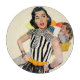 Konstnär: Mike Ludlow | Kvinnor i svartvitt med stripe ser tillbaka på mannen på soffan