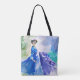 Dam i blå kruka - vattenfärgsfärg tygkasse
