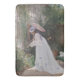 Den här designen har en målning av den Fransk konstnären Victor Gabriel Gilbert (1847-1933). Det visar en elegant ung dam som bär en lång vit klänning. Hon är i en trädgård och håller en vattenburk eftersom hon bryr sig om sina växter och blommor. Det finns också en liten vit hund sitta på en bänk i trädgården. Dam håller en rosa parasol. Det finns ett trämönster mot damens vägg, där även blommarna växer.
