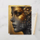 Skrapbok papper för skapar av skrapbojor, kort, bokmärke eller andra pappra hantverksbehov. En vacker kvinna med guld accents och blommor i hennes hår, magiska, eaterala fantasi ai art. Guld på baksidan.