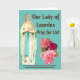 Vår bön Dam i Lourdes Prayer är välsignad, för att ha garanterat att ni med liv, söthet och skönhet visar er behärskning, i Lourdes Grotto, och säger till barnet Sankt Bernadette: "Jag är den ofyllda föreställningen." Tusen gånger gratulerar vi er till ert maktmissbruk. Och nu, Omakulera Virgin, Mor av barmhärtighet, Sjuka hälsa, syndabockars ledighet, Komforter till de drabbade, vet du att vi vill, våra bekymmer, vårt lidande: att vilja kasta en barmhärtighetsbild på oss. Genom att infinna er i Lourdes Grotto blev ni glad över att göra det till en privilegierad fristad, där ni gör er kvitt era tjänster, och redan har många fått botemedlet för sina otryggheter, både andlig och fysiska. Vi kom har därför det största obegränsade förtroendet för att bönfalla er mödravård. Erhåll vår begäran för oss, O-älskande Mor. (Ange din begäran) Genom tacksamhet för dina tjänster kommer vi att försöka imitera dina dygder, att vi en dag kan er ära. Vår Dam av Lourdes, Mor av Kristus, du hade inflytande på din gudomliga son medan du var på jorden. Du har samma inflytande nu i himlen. Be oss om hjälp. Få våra speciella förfrågningar från er gudomliga son om det blir den gudomliga viljan. Amen. Vår Dam i Lourdes, be för oss. Saint Bernadette, be för oss.