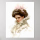 Brunette dam med rosa båge och frilandskap står i centrum för detta söt vintage affisch.