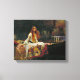 Detaljerad vintage bra konsmålning av Dam i Shalott (1888) på vatten i en bordsbåt. Dam i Shalott klädd i en vit fullt. Art av den engelska konstnären John William Waterhouse.