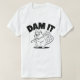 Den vita t-skjortan har en svart och vit tecknad som illustrerar en bäver med hård hatt och träplankar över skulderaxeln. Bakom bäver ligger dess ikoniska dammsugare-byggnad svan. Ovanför bäver är texten "DAM IT" tryckt i fet, lätt vinklad brev, och skapar en humoristisk pun som är relaterad till bäverns byggnad-dammar.