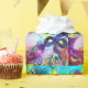 Färgfull, vit karnival ansikte, luddermask och dans figurer i måne ljus.Ursprunglig vattenfärgsmålning av Bulgan Lumini. ljusröd, rosa,fuchsia,blå,lila,gult färg med guld, silver folie och iridescent färg inspirerad av Carnival i Venedig. .