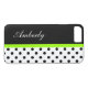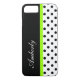Du kan anpassa caseser för smartphone-Anpassningsbar med chic svart och vit polka dots mönster och smart grönt mode rand, tillsammans med namn utrymme som du kan göra på egen hand genom att ersätta mallen namn med ditt eget monogram initialer. Låt dig bära din mobiltelefon i stil.