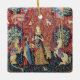 Dam och Unicorn, Smell (La Dame a la licorne, L'odorat) Medieval Tapestry (cirka 1500). Detta band är en del av en serie på sex. Varje tapesi har ett medeltida dam i olika attityder. Varje scen skildrar en av de fem sinnena, och en sjätte scen som heter Mon Seul Desir (min enda önskan).