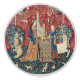 Dam och Unicorn, Hearing (La Dame a la licorne, L'ouie) Medieval Tapestry (cirka 1500). Detta band är en del av en serie på sex. Varje tapesi har ett medeltida dam i olika attityder. Varje scen skildrar en av de fem sinnena, och en sjätte scen som heter Mon Seul Desir (min enda önskan).