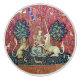 Dam och Unicorn, Sight (La Dame a la licorne, La vue) Medieval Tapestry (cirka 1500). Detta band är en del av en serie på sex. Varje tapesi har ett medeltida dam i olika attityder. Varje scen skildrar en av de fem sinnena, och en sjätte scen som heter Mon Seul Desir (min enda önskan).