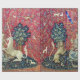 Dam och Unicorn, Sight (La Dame a la licorne, La vue) Medieval Tapestry (cirka 1500). Detta band är en del av en serie på sex. Varje tapesi har ett medeltida dam i olika attityder. Varje scen skildrar en av de fem sinnena, och en sjätte scen som heter Mon Seul Desir (min enda önskan).