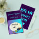 En mycket färgstark flygare som gör reklam för och öppnar för en kvinnobutik, bakgrunden färg i tealen. Tecknet överst har en akvapositiv bakgrund. Svart text står på vit> läser" Öppnar försäljning " På baksidan > 15 % av artiklarna, plats för namn på Handboken och Times. Bilder av klädesplagg och skor.