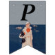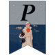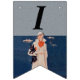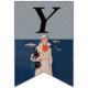 Den här flagga formade buntbanderollen har dam i en vit kostym som står vid havet med båtar i bakgrunden med en svart Scottish Terrier Hund. Anpassa 40-dagarstexten till Lycklig med mallarna.