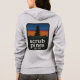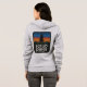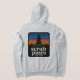 Dam Bella Canvas grå zip hoodie, scrub pines och medford lakes på främre fickan, solnedgångslogotyp på baksidan