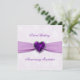 En Digitalbcon Images Design med en ametistlila färg och Damask Design-tema med en mängd olika anpassade bilder, former, mönster, stilar och teckensnitt i detta unika "Damask Ametist Jubileum"-inbjudningskort. Denna attraktiva och eleganta design kommer komplett med en kompletterande design på baksidan med anpassningsbar textbokstav både på framsidan och baksidan för att passa din egen speciella tillställning.