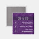 Ett vackert konst deco-inspirerat dammmönster i violett fungerar som en underbar bakgrund för Spara datum magneter. Huvudbudskapet visas i en djup lila längst upp. Lägg till datumet för den stora händelsen till den lämnat och all information nedan. Finns i alternativ färg med matchande produkter. com com.