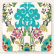 Blommönstren Turkos, plommon, grönt och lila möts på en vit bakgrund för att ge liv åt denna dammavla från Erica Vess i juni. Fungerar som en gåva till dig själv, en vän eller en familjemedlem.